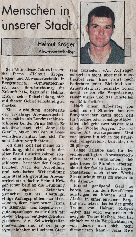 Helmut Kröger, seit 1999 selbständiger Regen- und Abwassertechniker. Mit meinem Team helfen wir Ihnen rund um das Thema Regenwassertechnik und Abwassertechnik sowie Rekultivierungen, Landschaftsbau und Erdbauarbeiten. Qualifizierte Mitarbeiter und ein moderner Maschinenpark garantieren fachliche Ausführung in hoher Qualität.
